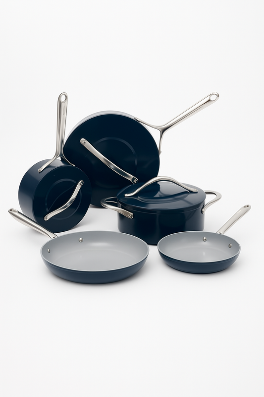Titanium’s non‑reactive nature means flavors stay pure, colors stay vibrant, and you can finally ditch excess oil without food sticking. The 8 mm thermobasic base spreads heat edge‑to‑edge, so sears are even and sauces reduce in record time. Backed by a 20‑year warranty, this is the last pan set you’ll ever need.
